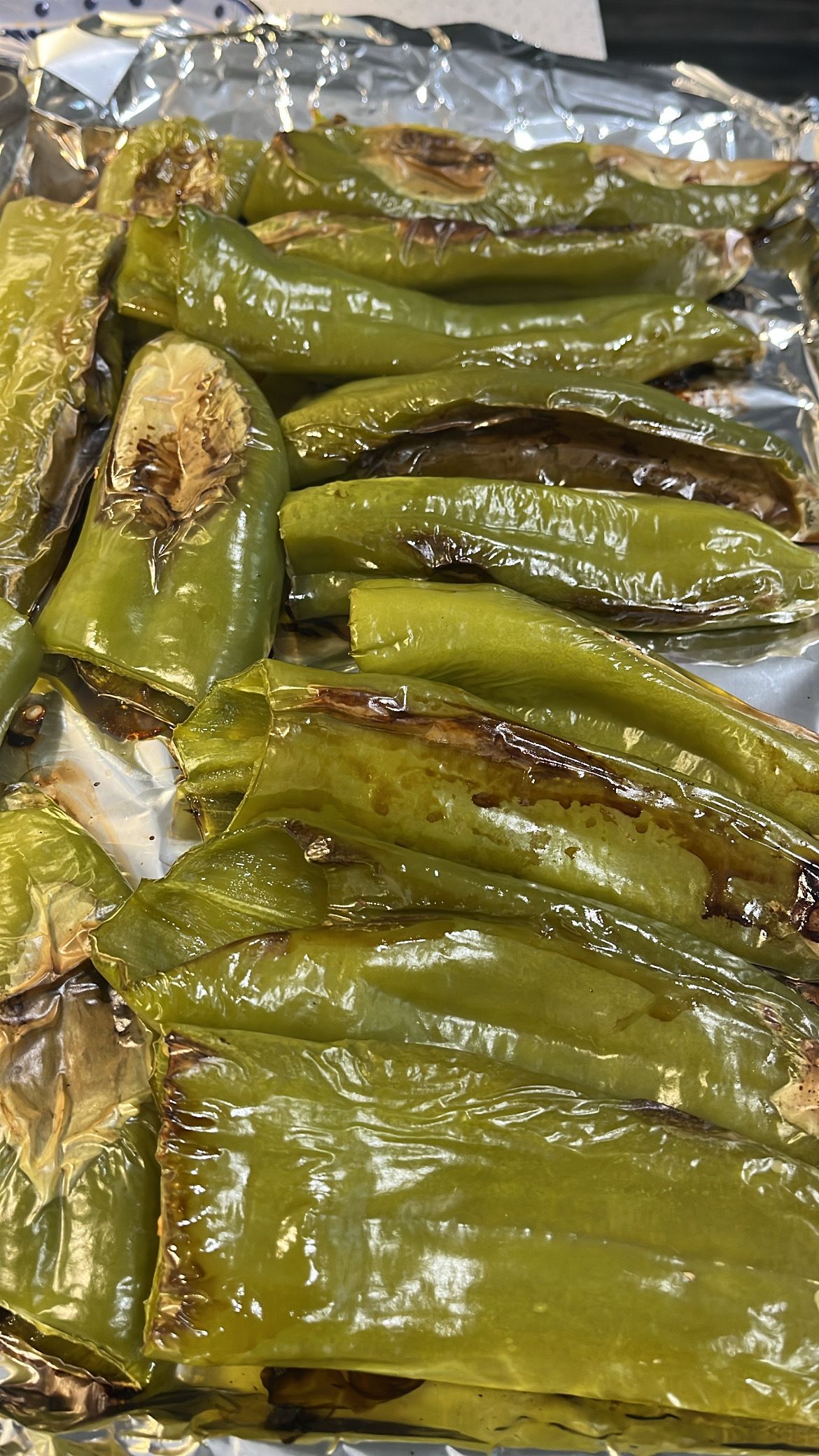 5 Anaheim chiles, roasted, steamed, peeled, sliced