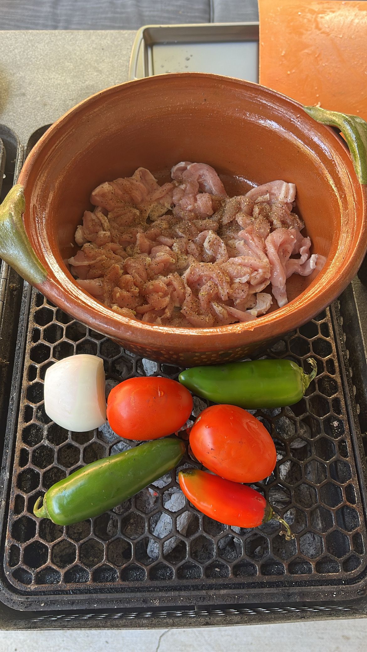 You can make this dish indoors — roasting the salsa ingredients in the oven or pan-frying on the stove — but I take it outside. My cooking style has evolved into recreating the nostalgic dishes I grew up on with open-fire heat. And the beauty of this guiso is how versatile it is. I make it different every time, and it always hits.